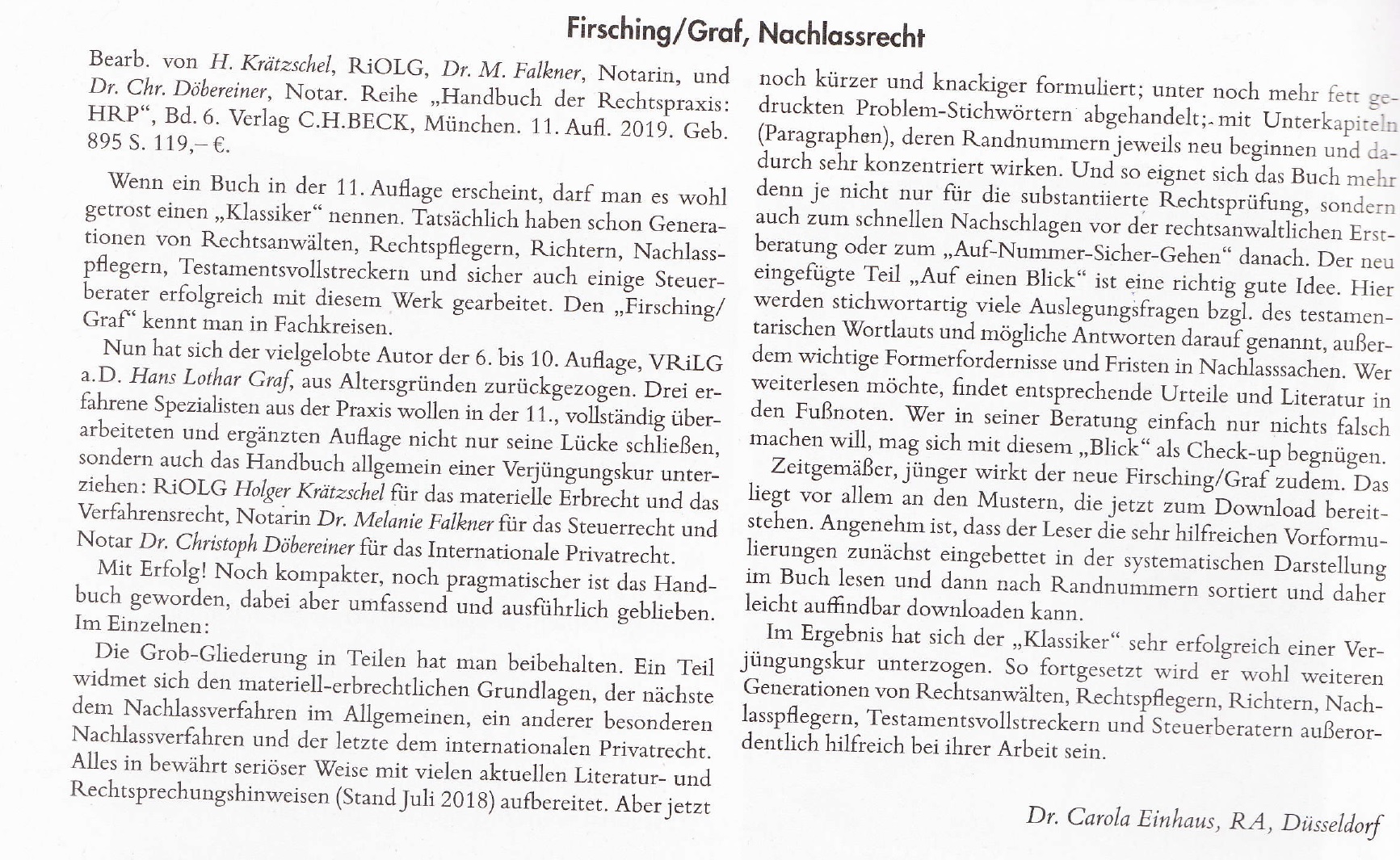 - Rezension zum Firsching/Graf, Nachlassrecht